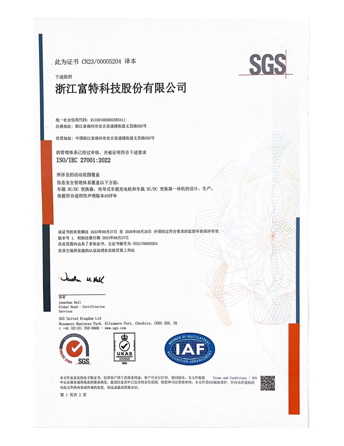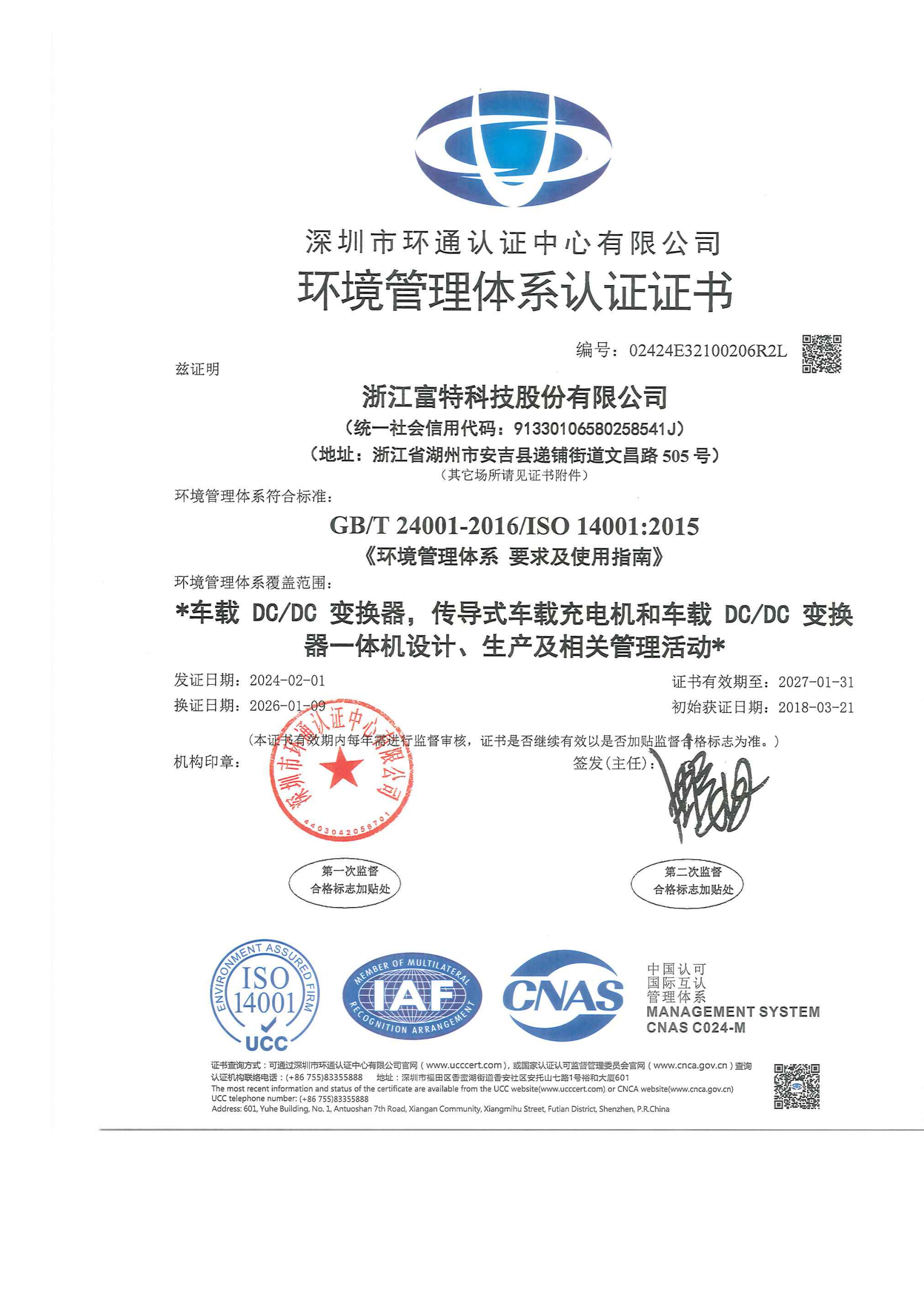 浙江富特科技股份有限公司,成立于2011年8月,生产基地位于湖州市安吉县,研发中心位于杭州市西湖区、西安市高新区,是一家专注于新能源汽车核心零部件的国家级高新技术企业,是国内新能源汽车车载充电机及车载 DC/DC 转换器的主要供应商。