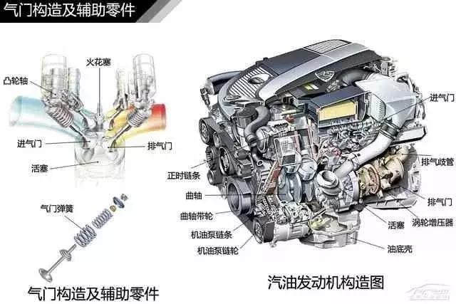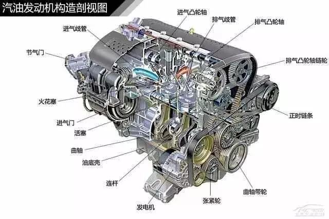 一般说到汽油发动机,我们都会说它是由2大机构5大系统构成:1、曲柄连杆机构,2、配气机构,3燃料供给系统,4、润滑系统,5、冷却系统,6、启动系统、7点火系统(柴油发动机没有点火系统)等组成。